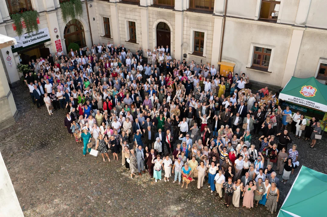 Uroczystości 160-lecie Szkół w Zamku Koźmińskim rozpoczęły się rano od wydawania materiałów zjazdowych i zwiedzania szkoły. O godzinie 11:30 w kościele parafialnym pw. św. Wawrzyńca odprawiona została uroczysta Msza Święta. Następnie uczestnicy przemaszerowali na dziedziniec szkoły, gdzie wykonano pamiątkowe, grupowe zdjęcie.