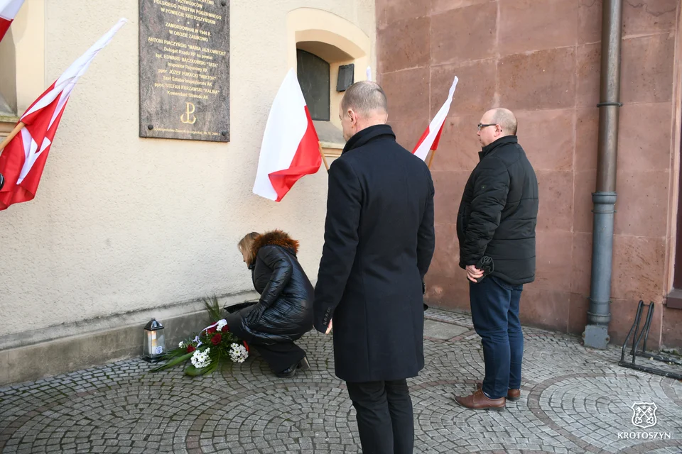 O godzinie 12.00 delegacje władz powiatowych i gminnych wraz z uczniami złożyły wiązanki kwiatów pod tablicą upamiętniającą przywódców Polskiego Państwa Podziemnego, znajdującą się na krotoszyńskim ratuszu.
