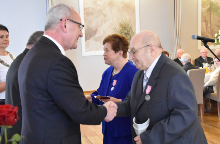 Po czym uczestnicy spotkania zostali uhonorowani Medalami za długoletnie pożycie małżeństwa nadanymi przez prezydenta RP. Wręczył je Maciej Bratborski, burmistrz miasta i Justyn Zaradniak, szef koźmińskiej rady miejskiej.