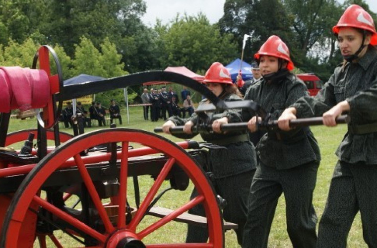 rużyny ? zarówno żeńskie jak i męskie - z OSP Kaniew, Gościejew i Dąbrowa okazały się najlepsze w powiecie w zawodach sikawek konnych. Trzecie już zmagania stoczono na terenie przyzamcza w Koźminie Wlkp. Najpierw w ćwiczeniu bojowym zmierzyły się pani. Musiały pokonać tor przeszkód, by na koniec rozciągnąć strażackie węże i uruchomić napędzaną jedynie siłą mięśni sikawkę ciągnięto przez parę koni. Po strąceniu za pomocą wody celu, sędziowie wyłączali stoper odmierzający czas wykonania zadania. Wśród pań reprezentantki Kaniewa potwierdziły formę z ubiegłorocznych zawodów w Śmiglu, gdzie zostały mistrzyniami Polski. Panowie także mierzyli się na tym samym dystansie, a niepokonani okazali się druhowie z Gościejewa.W trakcie zawodów Druhowie Leszek Rajs i Robert Rajs prowadzący w Pleszewie prywatne muzeum okiem fachowców oceniali sikawki należące do jednostek. Sprawdzali w ten sposób dbałość o zachowanie rzeczywistego wyglądu wyposażenia jakie mieli do dyspozycji strażacy ponad 100 lat temu. Imprezę zakończyło wręczenie pucharów.Klasyfikacja generalna zawodów:Męska Drużyna Pożarnicza