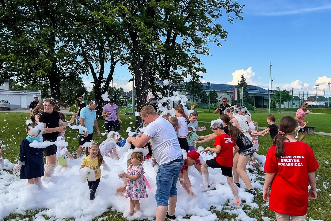 Były dmuchane zamki, pokazy samochodów bojowych i sprzętu strażackiego oraz konkurencje sprawnościowe i tradycyjne strącanie pachołków wodą. Dużą frajdę dzieciakom sprawiła Piana Party, a po intensywnej zabawie przyszedł czas na regenrację kiełbaską z grilla i popcornem.