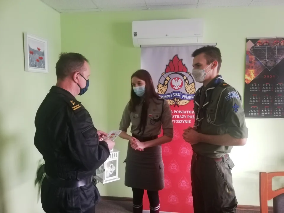 Przedstawiciele Związku Harcerstwa Polskiego z Krotoszyna odwiedzili komendę powiatową policji w Krotoszynie i komendę powiatową Państwowej Straży Pożarnej w Krotoszynie, by podzielić się betlejemskim światełkiem pokoju.
