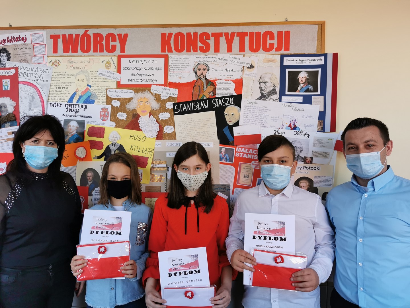 Uczniowie z klasy IV wykonywali plakat biograficzny Stanisława Augusta Poniatowskiego, uczniowie klas V – Hugo Kołłątaja, uczniowie klas VI – Stanisława Małachowskiego, klas VII – Ignacego Potockiego, a uczniowie klas VIII – Stanisława Staszica.