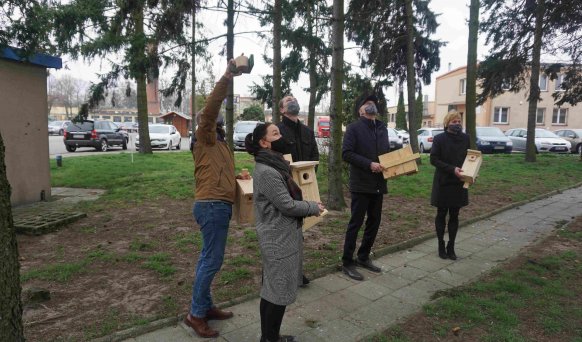 Wicestarosta krotoszyński Paweł Radojewski wspólnie z pracownikami Wydział Ochrony Środowiska, Rolnictwa i Leśnictwa starostwa krotoszyńskiego zawiesił przy budynkach starostwa budki lęgowe.