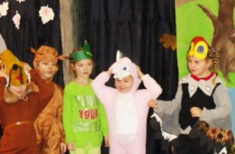 Dzieci z dwóch zdunowskich przedszkoli: publicznego i niepublicznego spotykają się co jakiś czas w miejscowej bibliotece. Bawią się i czytają książki.