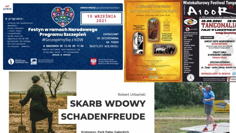 W sobotę, 18 września o godz. 20:00 w w krotoszyńskim parku miejskim przed Pałacem Gałeckich będzie można podziwiać spektakl Skarb wdowy Schadenfreude Roberta Urbańskiego. W ramach programu Teatr Polska 2021 mieszkańcy Krotoszyna i przyjezdni goście będą mogli obejrzeć przedstawienie przygotowane specjalnie do prezentacji w plenerze. Bilety w cenie 15 zł do nabycia w kasach kina i Krotoszyńskiego Ośrodka Kultury.