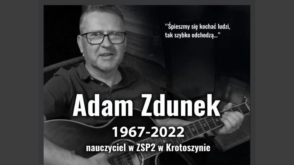 Z ogromnym bólem zawiadamiamy, że 29 lipca 2022 r. odszedł od nas do Wieczności nasz kolega Adam Zdunek, nauczyciel historii i geografii. Zawsze uśmiechnięty, życzliwy i pomocny. Będzie nam Ciebie brakowało. Odpoczywaj w Pokoju! - o śmierci Adama Zdunka poinformowano na profilu społecznościowym ZSP nr 2 w Krotoszynie.