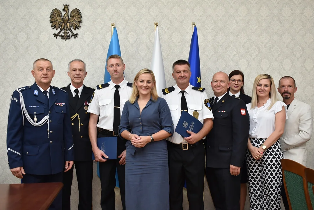 Z tej okazji burmistrz Krotoszyna zaprosiła do siebie strażników miejskich z Komendantem Straży Miejskiej Waldemarem Wujczykiem na czele oraz przedstawicieli współpracujących z nimi służb - insp. Mariusza Jaśniaka - Komendanta Powiatowego Policji oraz st. kpt. Tomasza Patryasa - Zastępcę Komendanta Powiatowego PSP.
