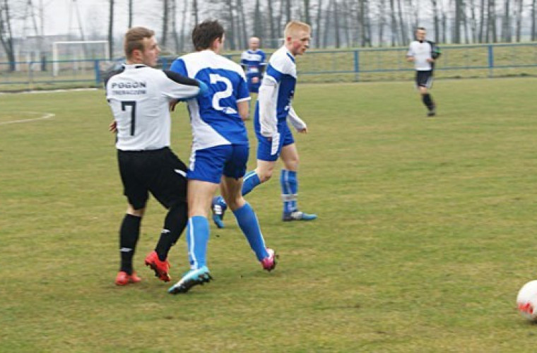 Natomiast Pogoń miała kilka dobrych okazji na wyrównanie. Patryk Wojtkowiak nie dał się jednak pokonać Przemysławowi Cecocie, Filipowi Latuskowi i Robertowi Krawczykowi, który także raz się pomylił. W doliczonym czasie po strzale głową z bliska był już precyzyjny i do przerwy był remis. Druga połowa zaczęła się od fatalnego „pudła” Krzysztofa Ratyńskiego, tymczasem po szybkiej kontrze, Latusek „na raty” zdobył gola dającego trębaczowianom prowadzenie. Odpowiedź mogła być natychmiastowa, ale Mariusz Lenda poradził sobie ze strzałem z dystansu Łukasza Budziaka. Później ze stałego fragmentu z 18 metrów i to na wprost bramki mocno niecelnie uderzył Karol Krystek.