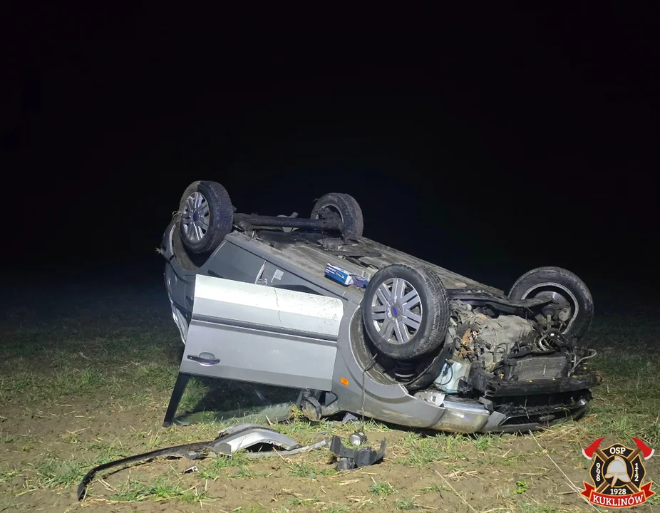 Kuklinów. Samochód dachował po wpadnięciu w poślizg