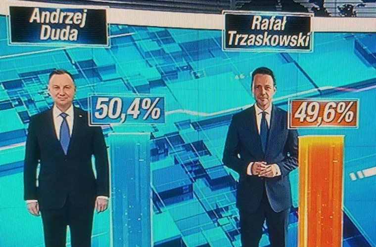 Wybory prezydenckie już się zakończyły. Czas na sondażowe wyniki IPSOS a te brzmią - Andrzej Duda 50,4% a Rafał Trzaskowski 49,6%. Zaś sondażowa frekwencja wyniosła 68,9%.