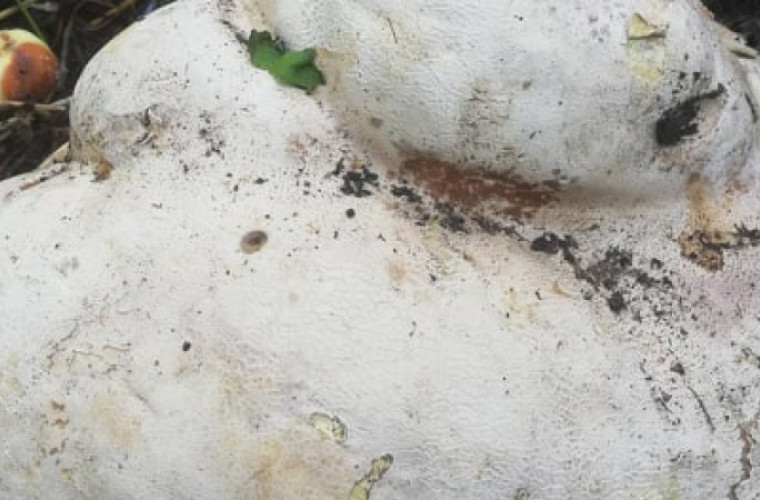 Ma 91 cm w obwodzie i cały czas rośnie. To purchawka oczkowana, która wyrosła na kompoście przy posesji pani Marii, mieszkanki Dzielic.