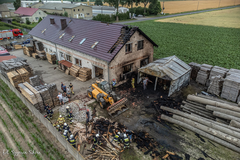 Działania straży pożarnej polegały na podaniu dwóch prądów gaśniczych w natarciu na palący się obiekt oraz dwóch prądów gaśniczych w obronie zagrożonego obiektu. Po stłumieniu pożaru KDR podjął decyzję o częściowej rozbiórce pokrycia dachowego oraz zabudowy poddasza w budynku stolarni w celu dotarcia do ukrytych zarzewi ognia i skutecznym jego dogaszeniu – wskazuje Tomasz Patryas.