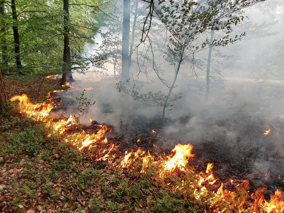 Na miejscu ustaliliśmy, że pali się poszycie leśne o powierzchni ok. 200 m2. Niska wilgotność ściółki wpływała na dość intensywny rozwój tego pożaru, na szczęście nie było żadnych osób, które w wyniku tego pożaru mogłyby ucierpieć - wskazuje Tomasz Patryas, oficer prasowy komendanta powiatowego Państwowej Straży Pożarnej w Krotoszynie.