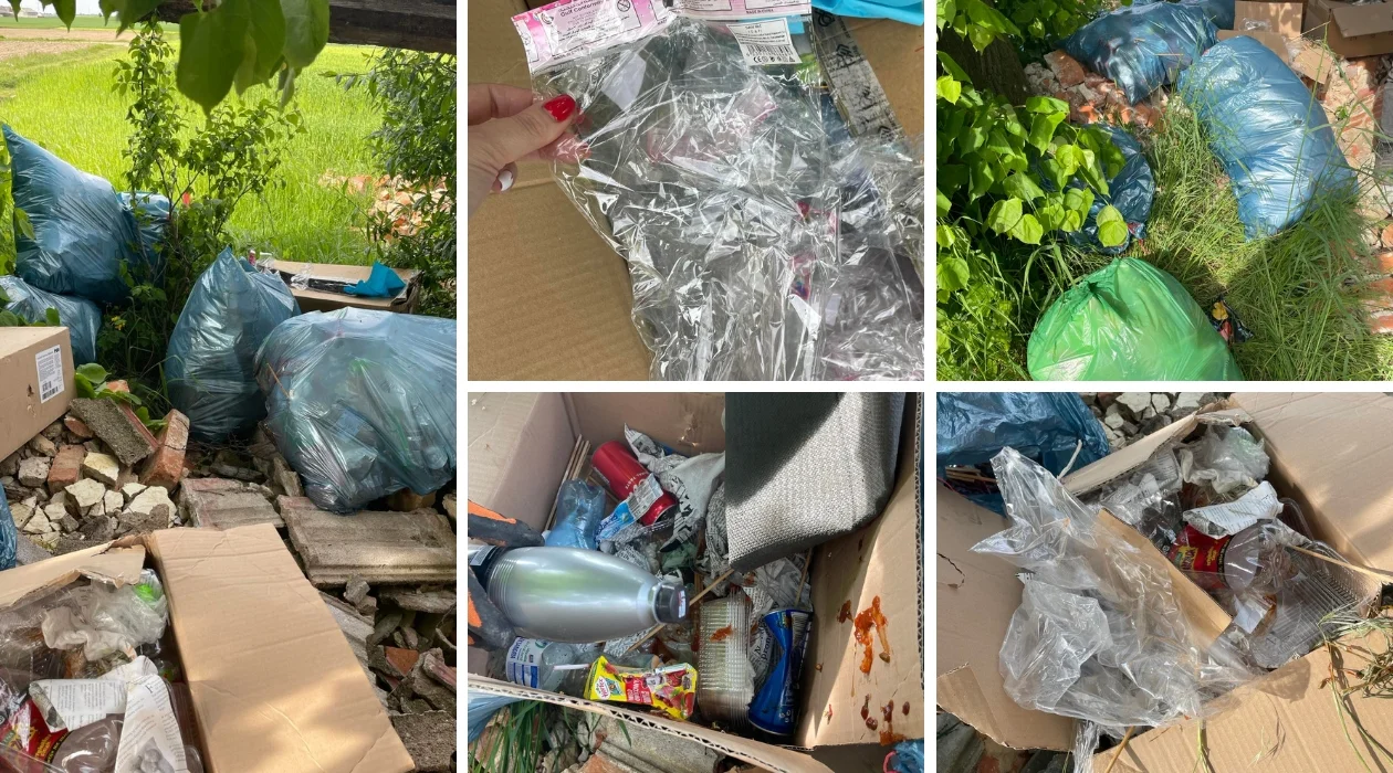 Dojeżdżając na swoje pole, do którego prowadzi długa polna dróżka zauważyłam kilka dużych kartonów, worków, a w nich pełno śmieci. Mogłam znaleźć wszystko w tych śmieciach, począwszy od paragonu z piekarni, podartej faktury za prąd, którą mogłam spokojnie odczytać z numerem licznika, chleba, pomidora, po butelki i puszki po napojach, pojemniki po ciastach aż po opakowania po zabawkach - relacjonuje kobieta.