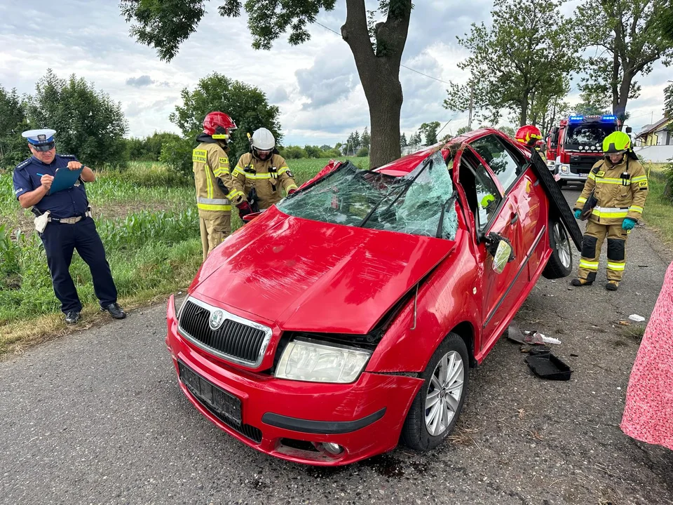 Zderzenie z drzewem i dachowanie. Ruch całkowicie zablokowany