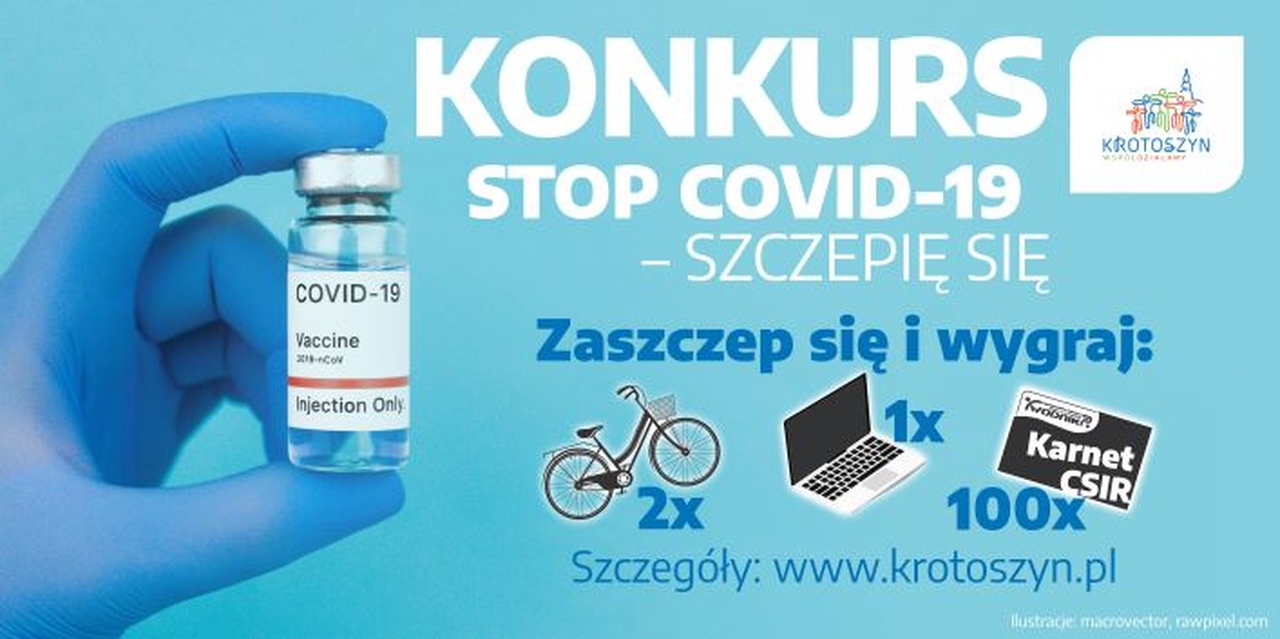 Wszyscy pełnoletni mieszkańcy miasta i gminy Krotoszyn, którzy zaszczepili się co najmniej pierwszą dawką szczepionki przeciw COVID-19 w terminie do 25.08.2021 r. i zgłoszą ten fakt do Urzędu Miejskiego w Krotoszynie oraz podadzą krótkie hasło promujące szczepienia przeciw covid-19, wezmą udział w konkursie - informują władze Krotoszyna.