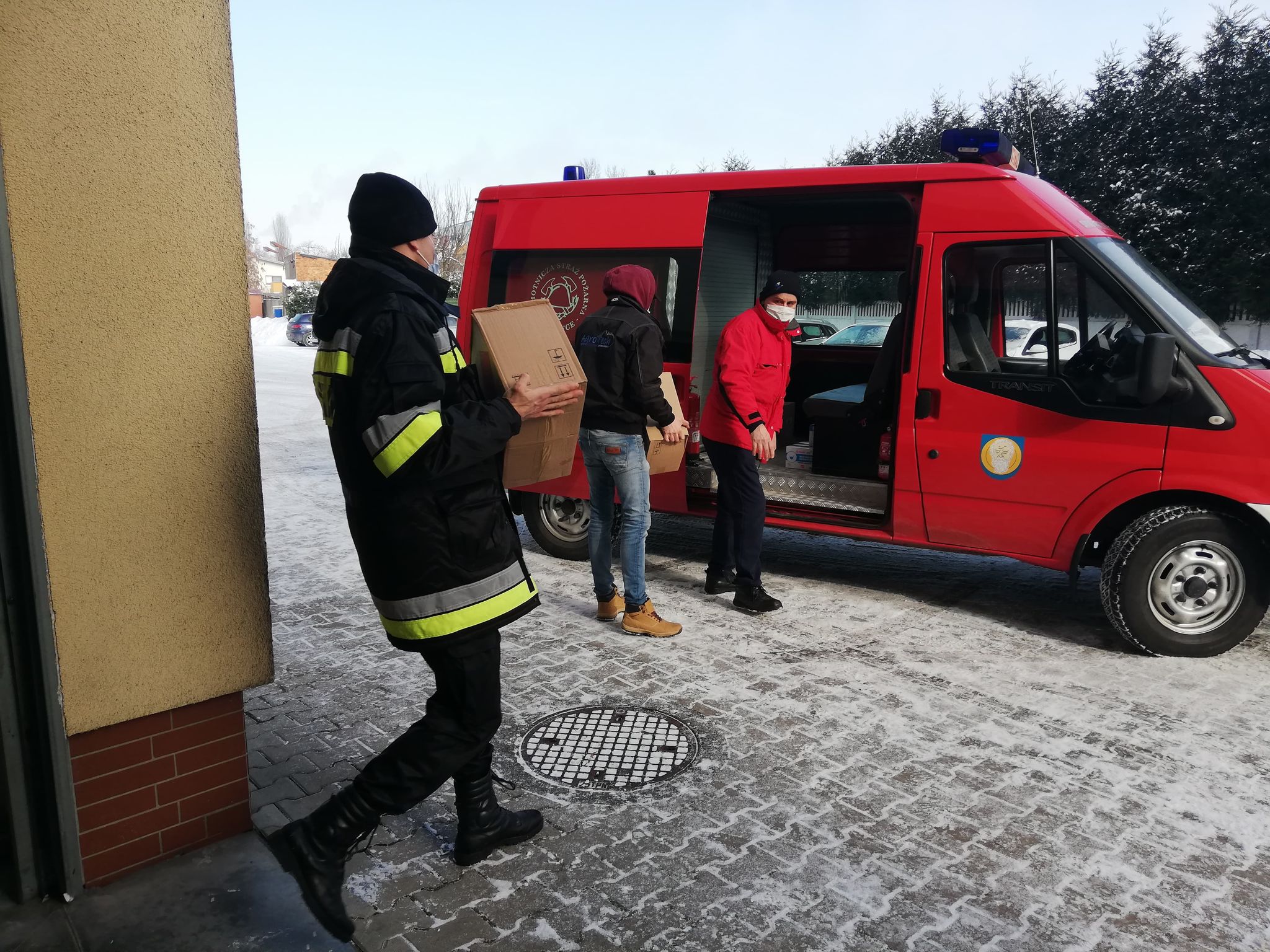 Jednostki OSP zostały zaopatrzone w środki ochrony indywidualnej w postaci maseczek i płynów do dezynfekcji, by akcje dowozów seniorów do punktów szczepień oraz roznoszenia ulotek przebiegały w bezpiecznych dla nich warunkach.