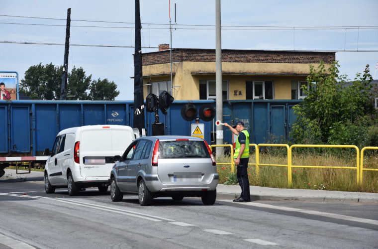 Przejazd kolejowy na ulicy Boreckiej w Koźminie Wlkp. jest zamknięty. Ulica Borecka jest zablokowana, a ruchem kierują policjanci.