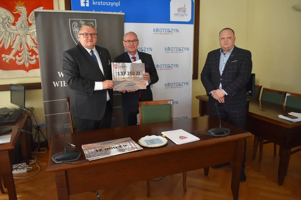 Umowę na przekazanie dotacji podpisali Krzysztof Grabowski - Wicemarszałek Województwa Wielkopolskiego oraz Maciej Bratborski - burmistrz Koźmina Wlkp.
