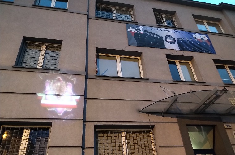 W tym roku polska policja państwowa obchodzi 100-lecie istnienia. Z tej okazji na budynku komendy powiatowej policji w Krotoszynie zawisnął baner okolicznościowy i iluminacja świetlna.
