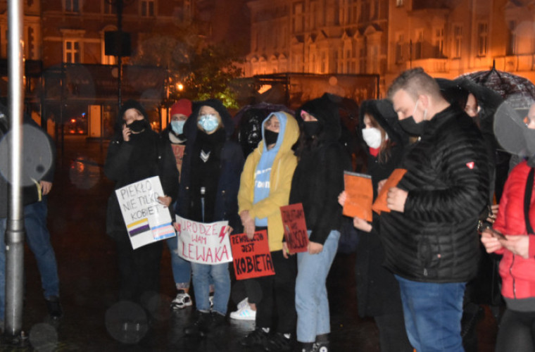 Protestujący na krotoszyńskim rynku wykrzykiwali hasła: „Nasze ciała – nasz wybór”, „Piekło kobiet”, czy bardziej wulgarne jak „Jeb** PiS”.