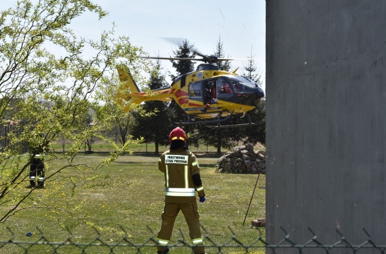 Lekarz Lotniczego Pogotowia Ratunkowego zbadał mężczyznę. Na szczęście odniesione przez niego obrażenia nie wymagały transportu lotniczego do specjalistycznej placówki medycznej.