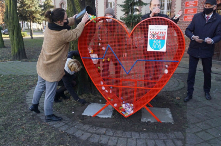 Czerwone, metalowe serce stanęło przed budynkiem starostwa w Krotoszynie. Do pojemnika każdy może wrzucać nakrętki, z których dochód zostanie przeznaczony na pomoc niepełnosprawnym mieszkańcom powiatu krotoszyńskiego.