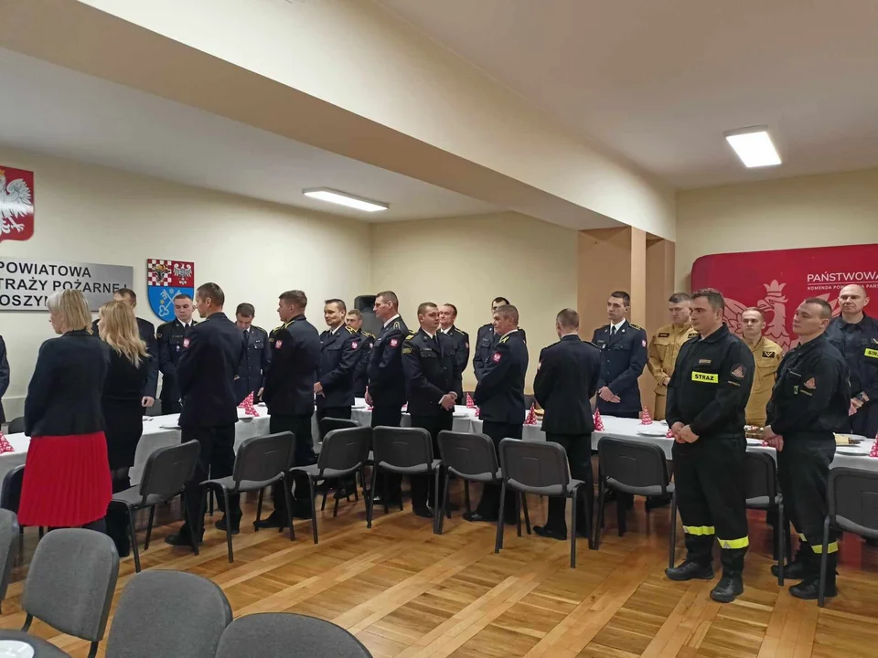 Strażacy i pracownicy cywilni Komendy Powiatowej Państwowej Straży Pożarnej w Krotoszynie zasiedli do wspólnego stołu, by złożyć sobie świąteczno - noworoczne życzenia.