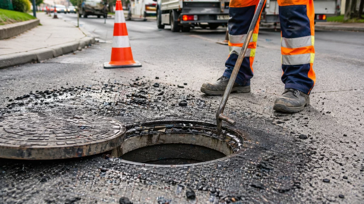 Regulacja studzienek kanalizacyjnych to standardowy element utrzymania infrastruktury drogowej. Choć prace są krótkotrwałe, wymagają całkowitego wyłączenia ruchu na danym odcinku, by zapewnić bezpieczeństwo pracowników i kierowców.