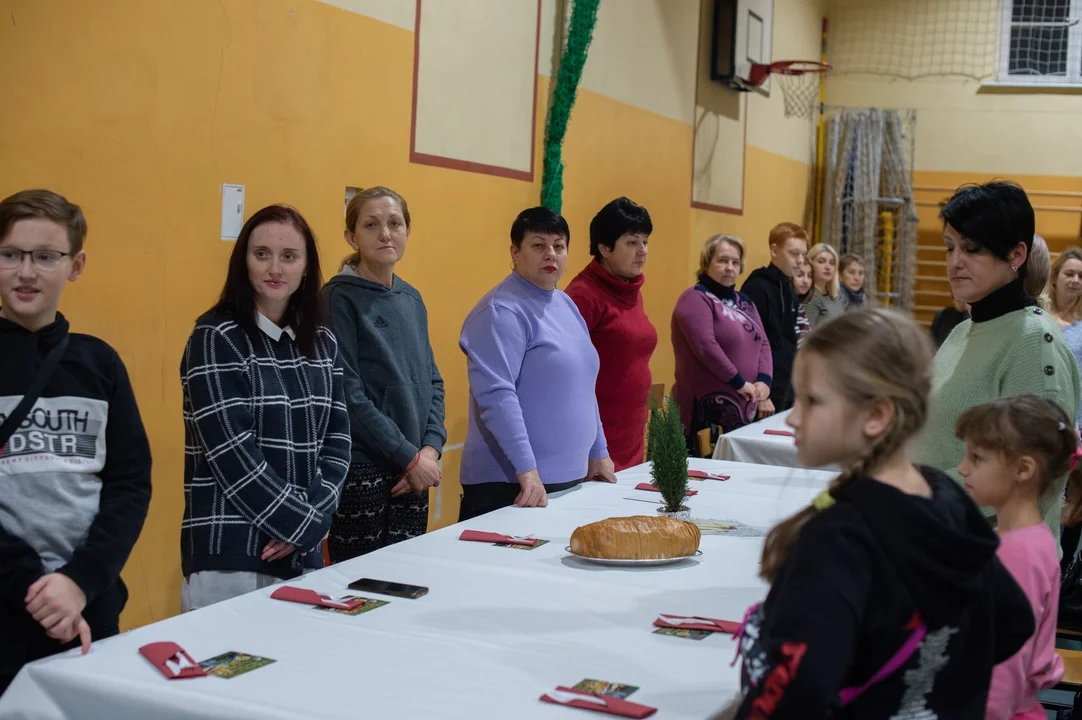 Przy wspólnym stole zasiedli mieszkańcy, samorządowcy, władze kościelne, darczyńcy i organizatorzy Wigilii.