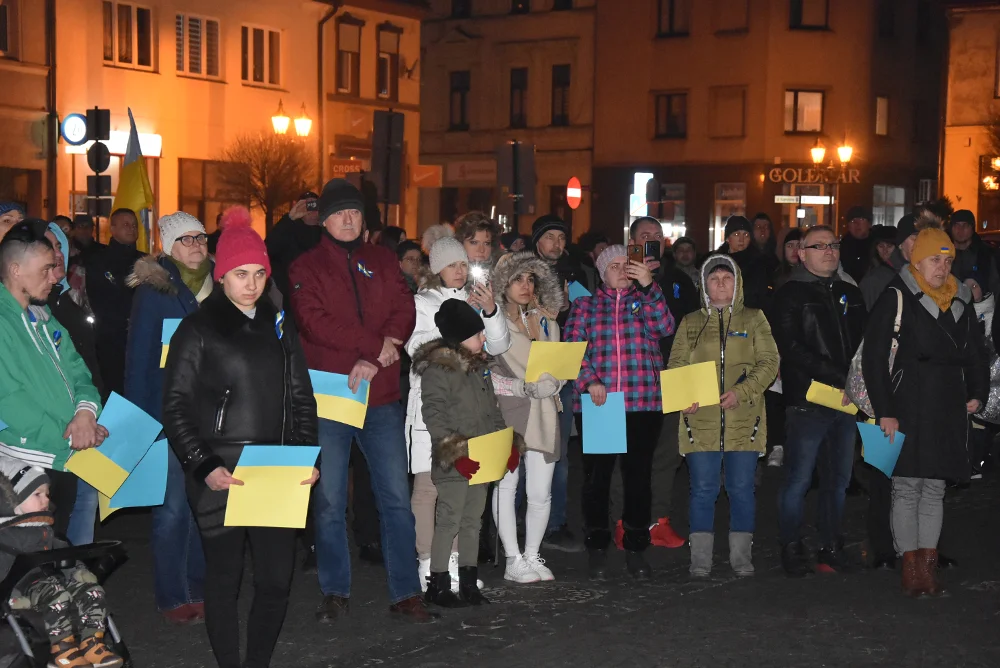 Podczas wiecu na krotoszyńskim rynku wysłuchano Hymnu Ukrainy, nie brakowało też okrzyków wsparcia i solidarności.
