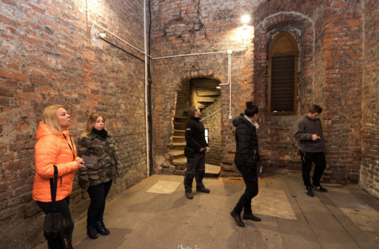 Następnie eksploratorzy udali się do podziemi znajdujących się po drugiej stronie kościoła. - Podziemia były o tyle ciekawe, gdyż nikt do nich od dłuższego czasu nie zaglądał i byliśmy pierwszą ekipą, która udokumentowała na fotografii i filmie wizytę – dodają eksploratorzy. Niedostępne podziemia okazały się sporym pomieszczeniem, z którego wychodzą zasypane przejścia. Wizytę w krotoszyńskiej Farze kontynuowali, zwiedzając poddasze i wieżę – gdzie oglądali zmodernizowaną dzwonnicę oraz panoramę Krotoszyna.