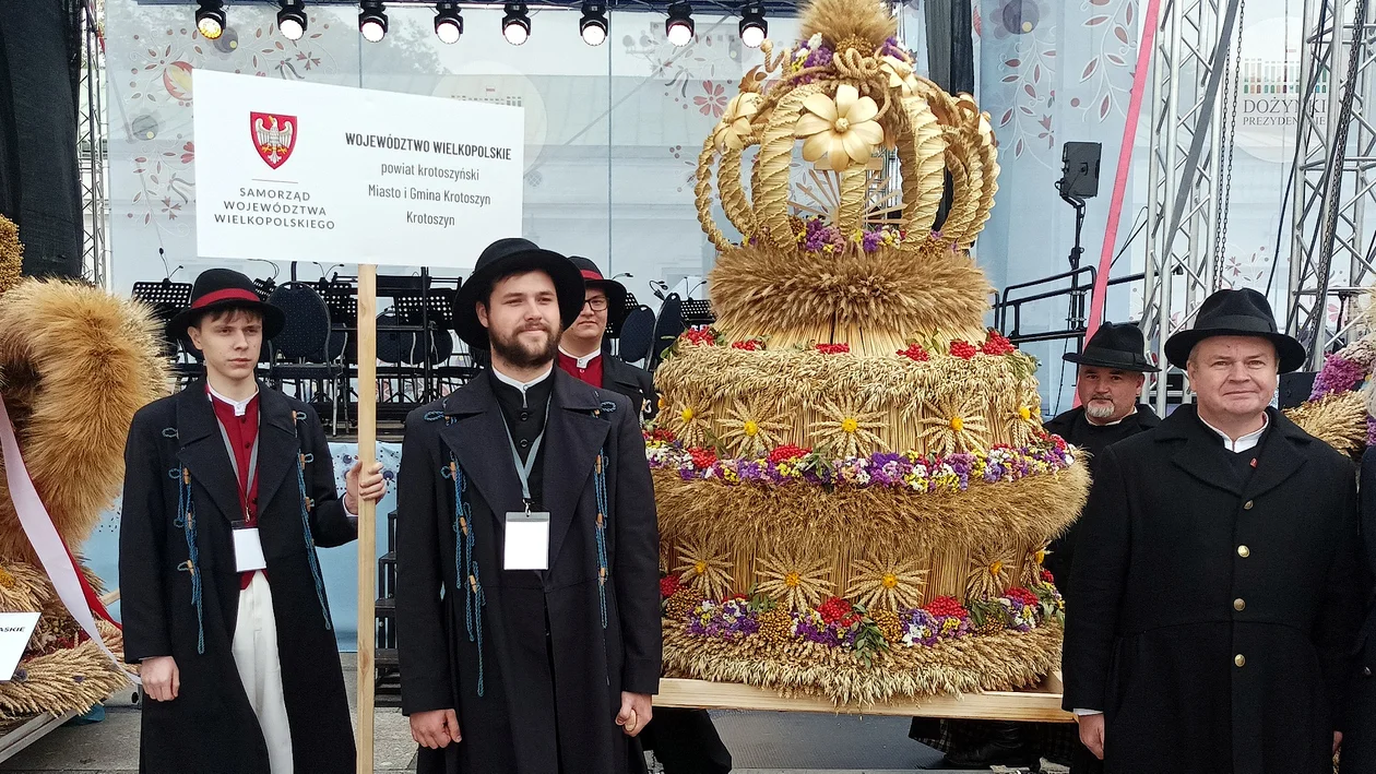 Wieniec dożynkowy z Wielkopolski przygotował artysta ludowy Piotr Barańczak wraz z żoną Marią, rodziną i sąsiadami, mieszkańcami wsi Trzemeszno koło Rozdrażewa w powiecie krotoszyńskim.