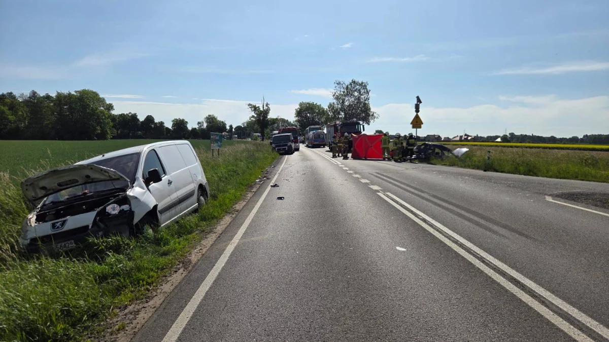 Wypadek śmiertelny w Lutogniewie - samochód dostawczy wjechał w osobówkę