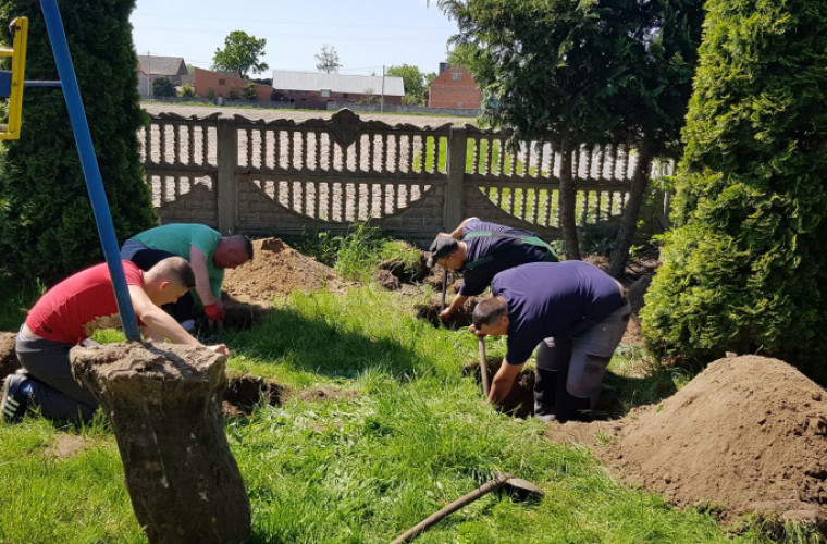 Grupa mieszkańców Długołęki systematycznie dba o pielęgnację terenów zielonych i klombu we wsi oraz przycina gałęzie drzew przy stawie i drodze w kierunku lasu.