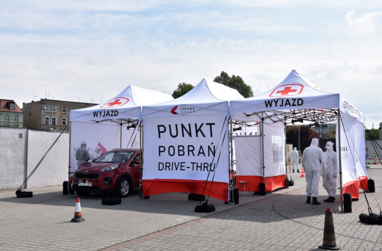 Samochodowy punkt poboru pobrań obsługiwany przez żołnierzy Wojsk Obrony Terytorialnej jest pierwszym tego typu w Polsce.