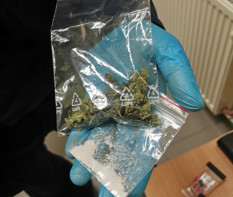 Dodatkowo okazało się, że w samochodzie 20-latka znajdują się narkotyki - policjanci znaleźli dwa woreczki z marihuaną i amfetaminą.