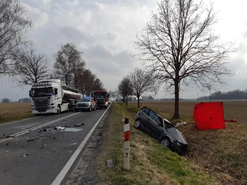 Ze wstępnych ustaleń wynika, że 24-latek z powiatu krotoszyńskiego, jadąc BMW, z nieustalonych przyczyn zjechał na przeciwległy pas ruchu i zderzył się czołowo z jadącym z naprzeciwka MAN-em. Mężczyzna poniósł śmierć na miejscu. 24-letnia pasażerka osobówki została przetransportowana Lotniczym Pogotowiem Ratunkowym do szpitala. Jej stan jest ciężki – informuje p.o. oficera prasowego Komendanta Powiatowego Policji w Oleśnicy, Bernadeta Pytel.