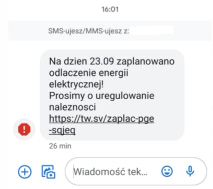 "Na dzień 23.09 zaplanowano odlaczenie energii elektrycznej! Prosimy o uregulowanie naleznosci" - czytamy w treści SMS-ów.