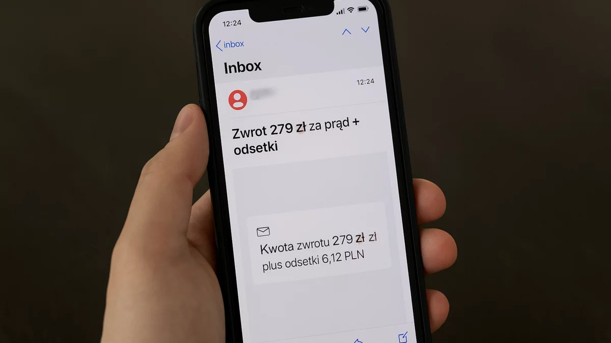 „Kwota zwrotu 279,29 zł plus odsetki 6,12 PLN” – tak brzmi fragment maila, który już trafia do skrzynek odbiorców w całym kraju. Nadawca podszywa się pod Polską Grupę Energetyczną (PGE), a treść korespondencji została przygotowana tak, by wyglądała wiarygodnie.