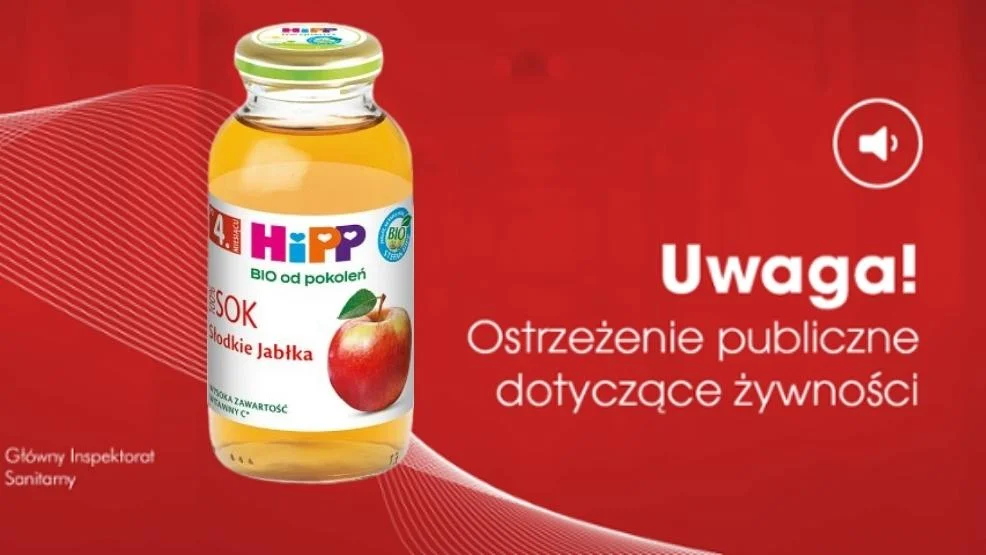 Chodzi o sok HIPP 100% Słodkie Jabłka po 4 miesiącu 200 ml, o numerze partii LA98967 z datą minimalnej trwałości do spożycia do 31.10.2023 r.