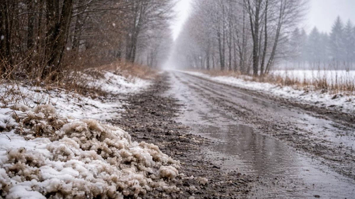 Czwartek przyniesie kolejne pogorszenie warunków. Przy temperaturze około 4°C możliwe są opady deszczu ze śniegiem. Zachmurzenie całkowite, a liczba godzin słonecznych ograniczona do minimum. Na drogach i chodnikach mogą pojawić się śliskie odcinki.