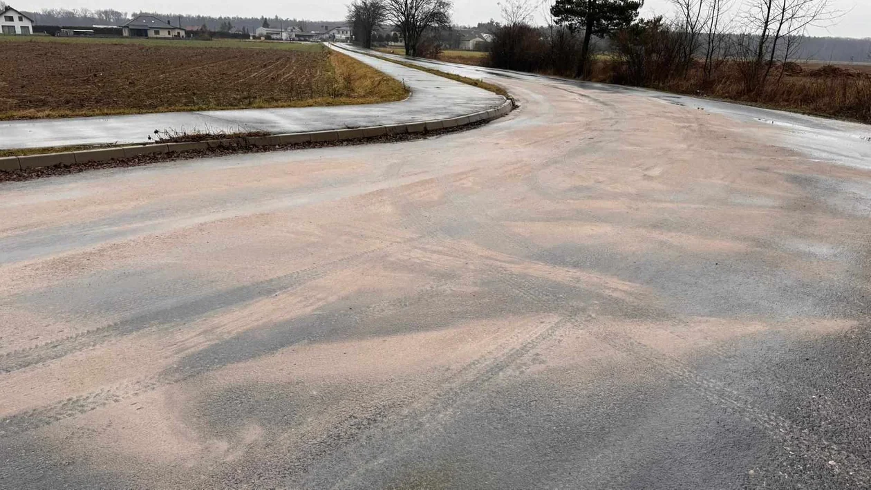Strażacy, do czasu przyjazdu piaskarek, zajęli się najbardziej niebezpieczną substacją w newralgicznych miejscach - na skrzyżowaniach i łukach dróg. Przy pomocy sorbentu i podręcznego sprzętu burzącego usunęli z jezdni plamy śliskiej substancji. Zabezpieczyli także pozostałe fragmenty drogi do czasu przyjazdu piaskarek.