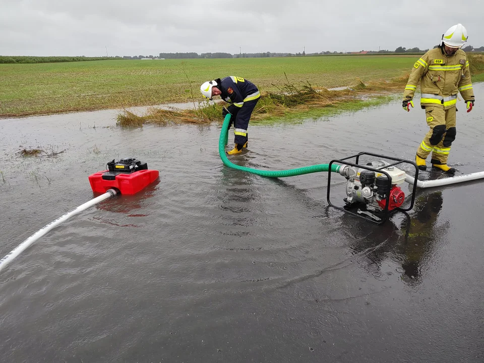 Dwukrotnie strażacy interweniowali przy zalanych drogach - w Orpiszewie oraz na trasie Lutogniew - Wróżewy.