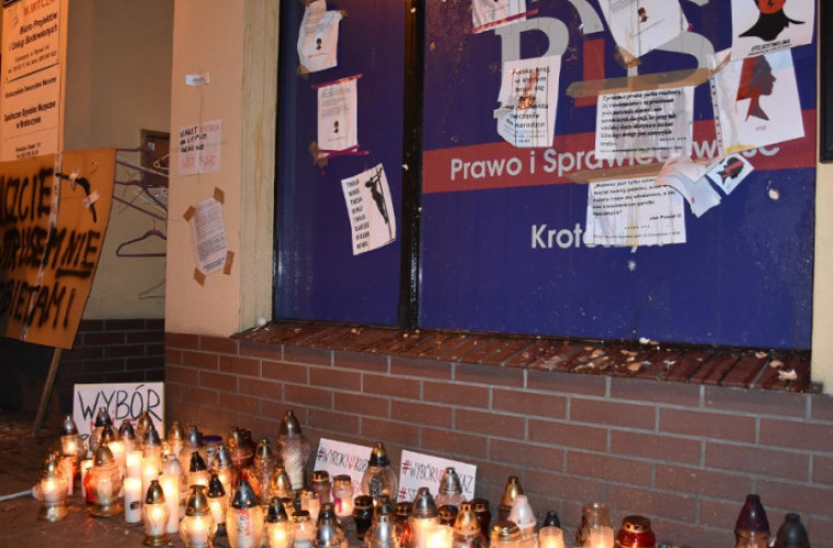 Pod biurem Prawa i Sprawiedliwości w Krotoszynie zapalono znicze. Protestujący zostawiali także wieszaki symbolizujące metody aborcyjne z dawnych czasów oraz plakaty wyrażające sprzeciw dla wyroku trybunału i rządów PiS.