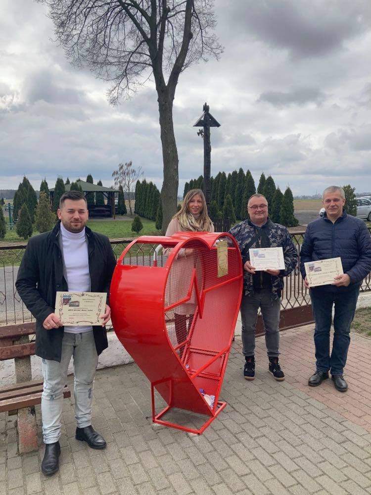 W zakup metalowego serca na nakrętki włączyli się także darczyńcy – OSP Kuklinów, Rolnicza Spółdzielnia Produkcyjna w Kuklinowie oraz firma KROTO-BUD-MAL.