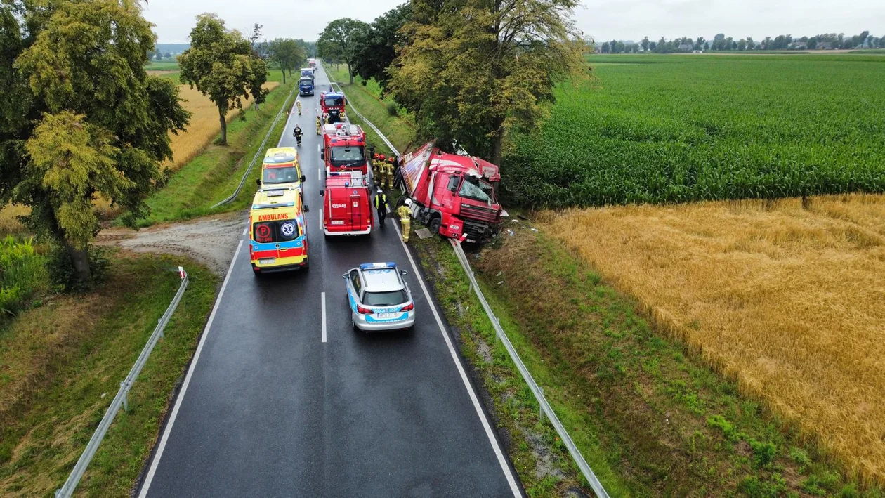 Na miejscu, w wyniku przeprowadzonego rozpoznania, Kierujący Działaniem Ratowniczym ustalił, że doszło do zdarzenia z udziałem samochodu ciężarowego. Zestaw ciągnik siodłowy wraz z naczepą znajdował się poza obrysem jezdni w rowie, nie przewoził ładunku - relacjonował wówczas Tomasz Patryas, oficer prasowy komendanta powiatowego Państwowej Straży Pożarnej w Krotoszynie.