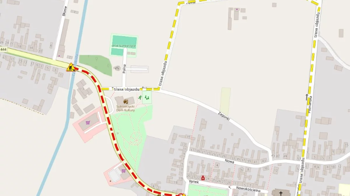 Poniżej prezentujemy mapę objazdów.