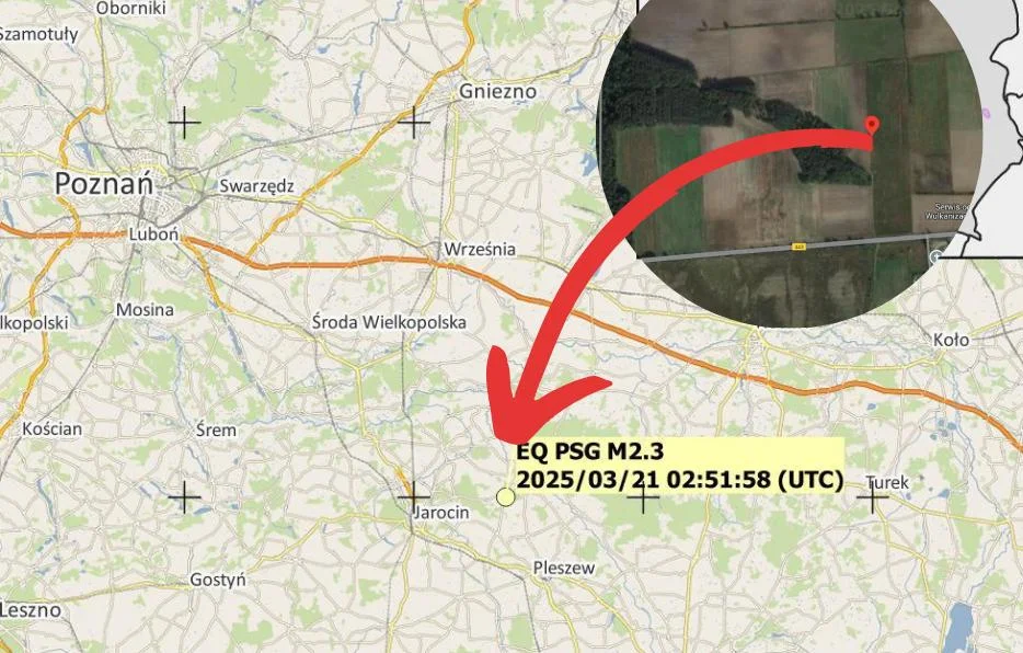 "W dniu 21/03/2025 r. o godz. 02:51:58.3 (UTC) (tj. o godz. 03:51:58.3 czasu lokalnego) miał miejsce wstrząs sejsmiczny w rejonie Jarocina. Położenie epicentrum, wyznaczone na podstawie zapisów stacji sieci PSG_Sejs_NET, Sudeckiej Sieci Sejsmologicznej oraz danych o otwartym dostępie z Polskiej Sieci Sejsmologicznej PLSN, wybranych stacji: Czeskiej Regionalnej Sieci Sejsmologicznej CRSN, sieci MOravia NETwork (MONET) - czytamy w komunikacie.